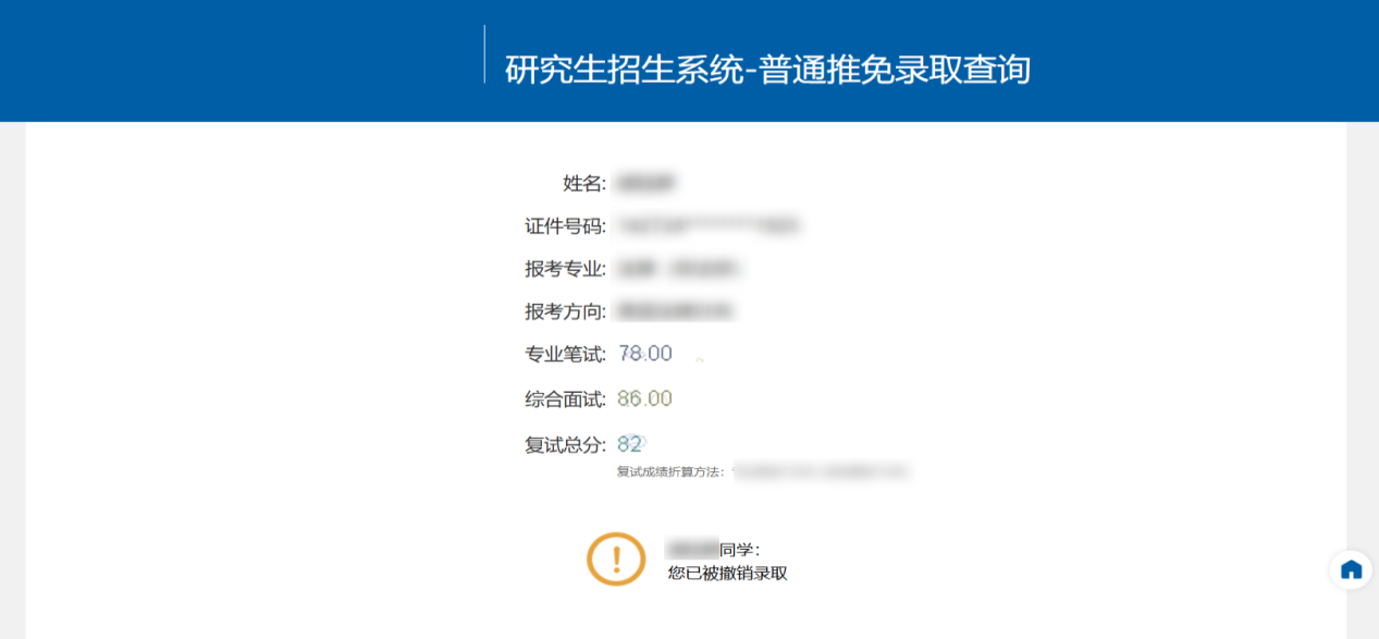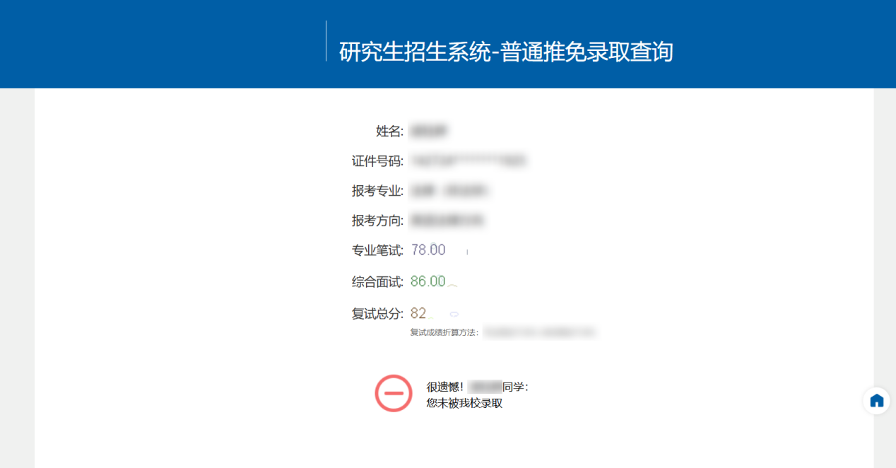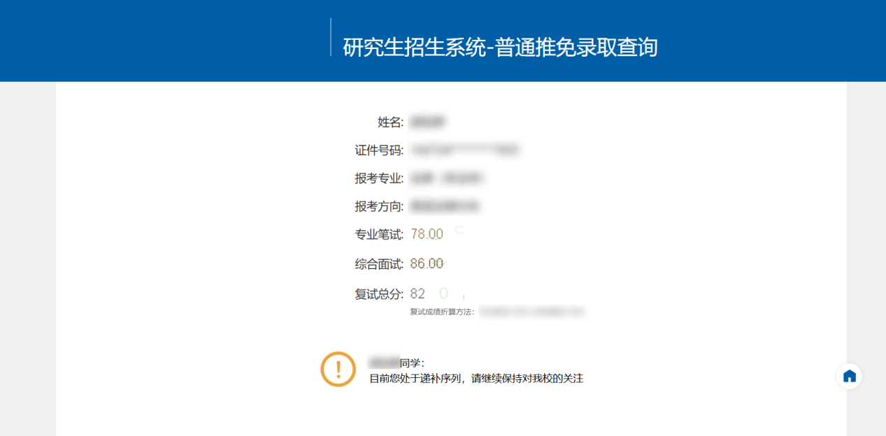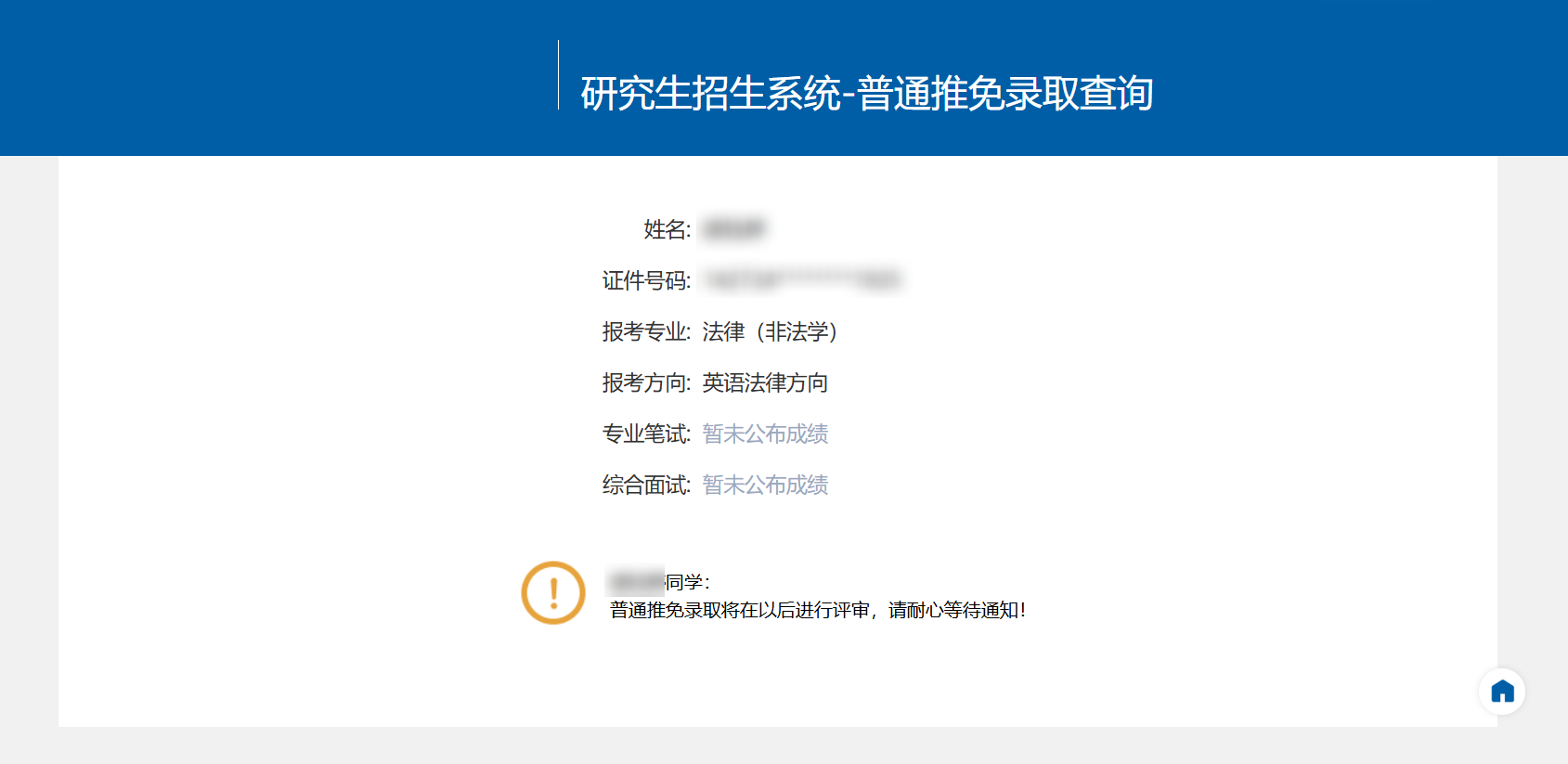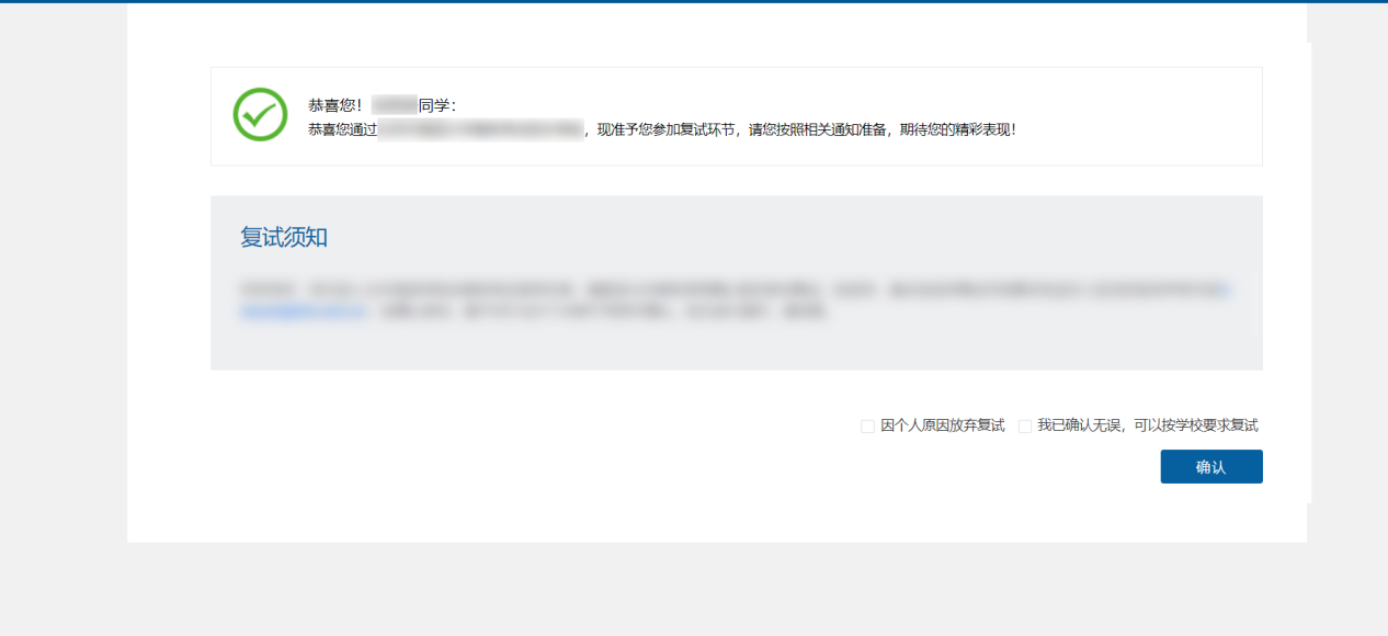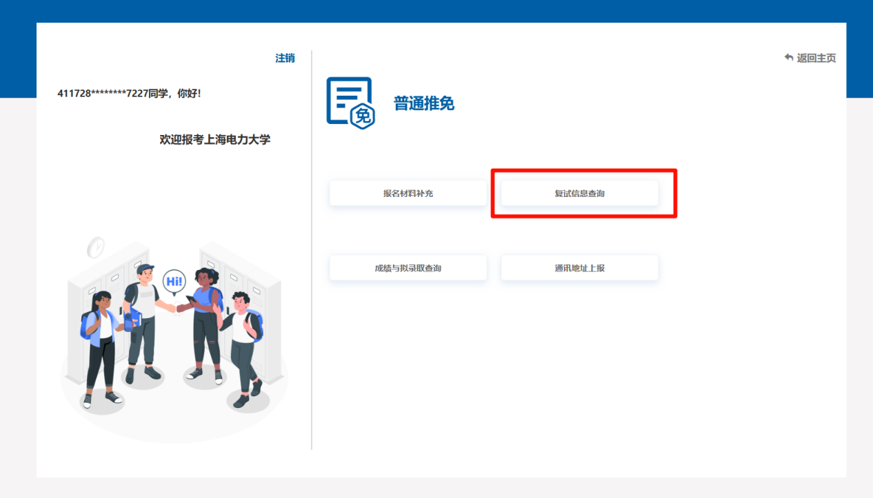 在普通推免模块中点击【复试信息查询】,可查询到报名审核状态,是否被准予复试。