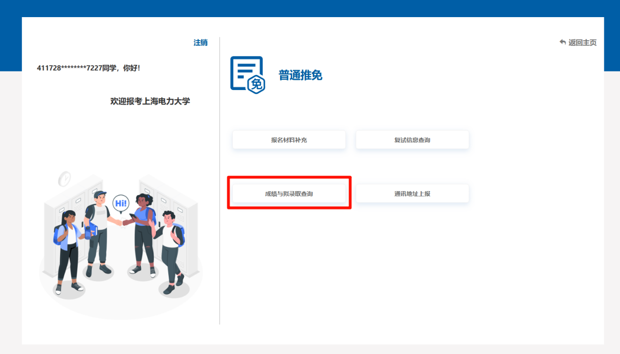 1.在普通推免模块中点击【成绩与拟录取查询】,可查询到成绩,以及录取状态。