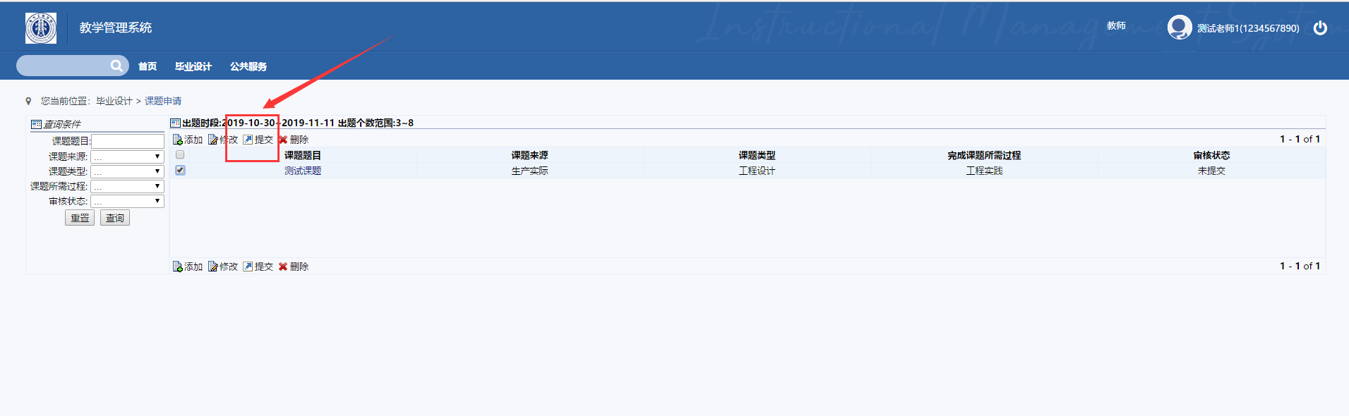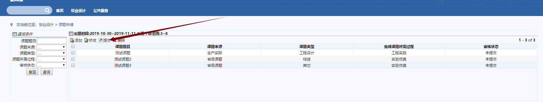填写完出题信息后一起提交课题未达到最低数量不允许提交