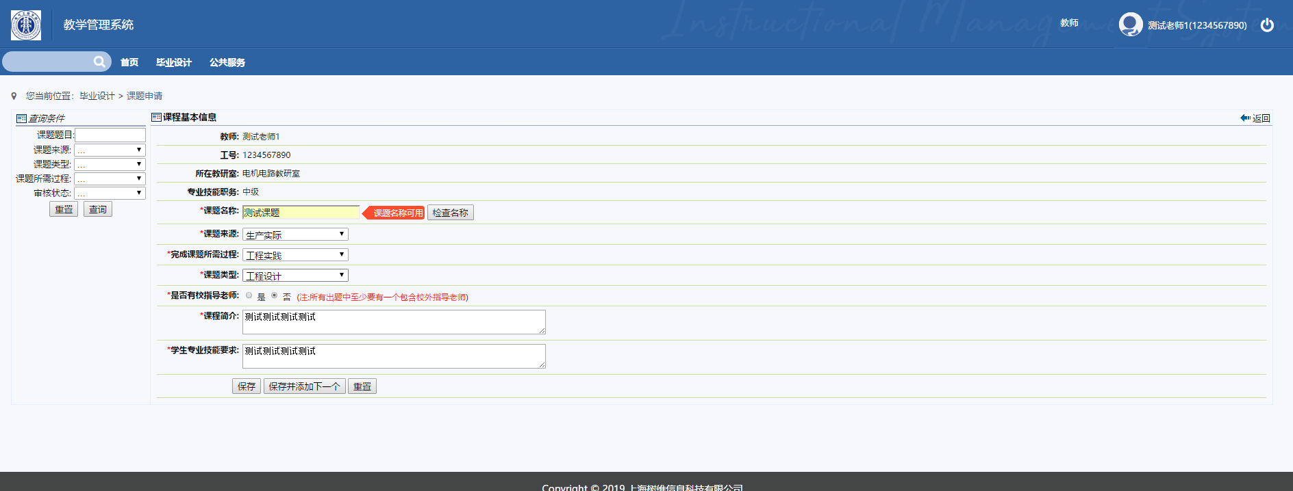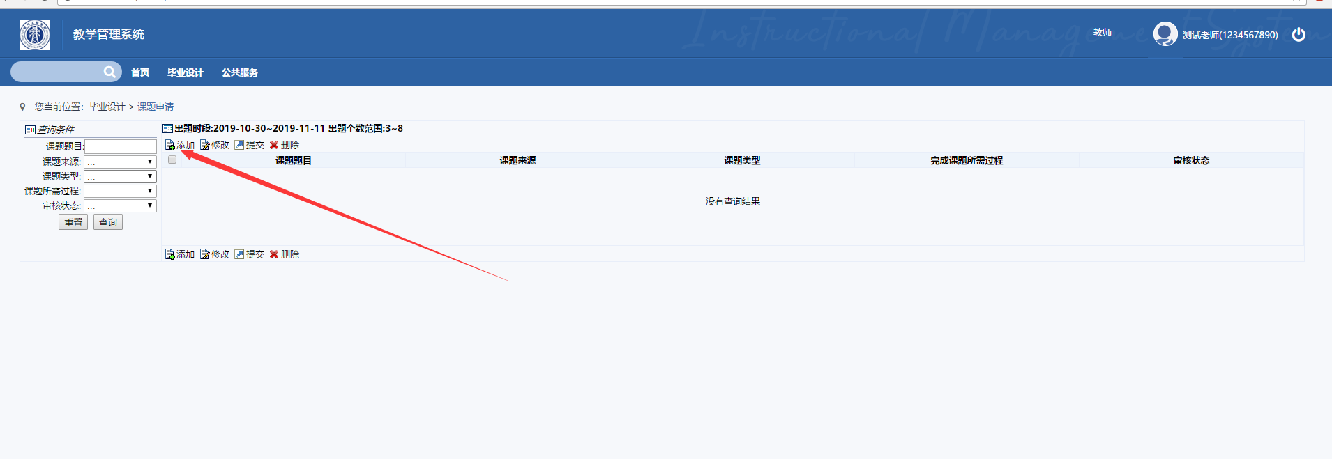 31113日新进老师(第一次带毕设的老师)登陆系统出题:要求出题数为3~4个。