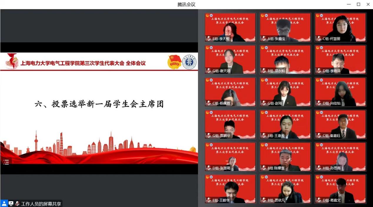 在全体会议上,全体与会代表在线上用无记名投票的方式分别选举出beat365中国唯一官方网站新一届学生会主席团成员和学生常任代表委员会委员。胡邵程当选新一届学生会执行主席,许忆婕、翁辰恺当选新一届学生会主席团成员。任明阳、贾依凡等8名学生代表当选新一届学生常任代表委员会委员。