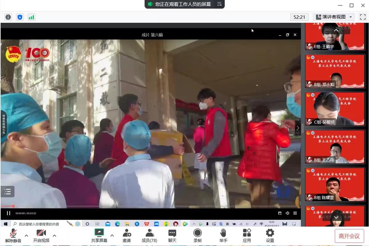 青春热烈的暖场视频《有我》,展现出电气青年学子许党许国的青春激情、为国为民的责任担当、朝气蓬勃的精神风貌,大会开幕式在雄壮的国歌声中拉开帷幕。