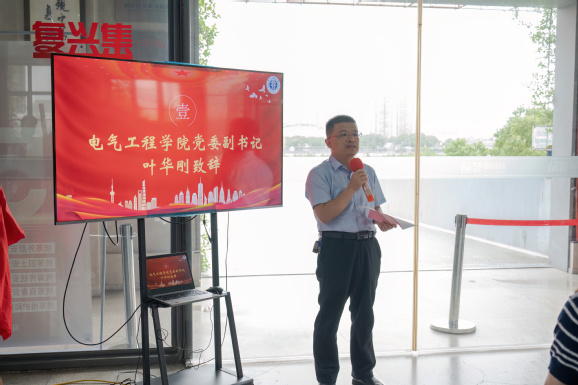 在揭牌仪式环节,叶华刚介绍了学院大学生实践育人的做法,指出杨树浦驿站电厂站紧邻百年电厂杨树浦发电厂,希望通过学院与驿站携手,将学院大学生电气的专业知识赋能驿站,打造行走的电力课堂,向市民百姓宣传电力发展,共同打造驿站电力特色的崭新名片。大学生在驿站实践中学习电力发展史,在实践讲解中感受能源情怀。