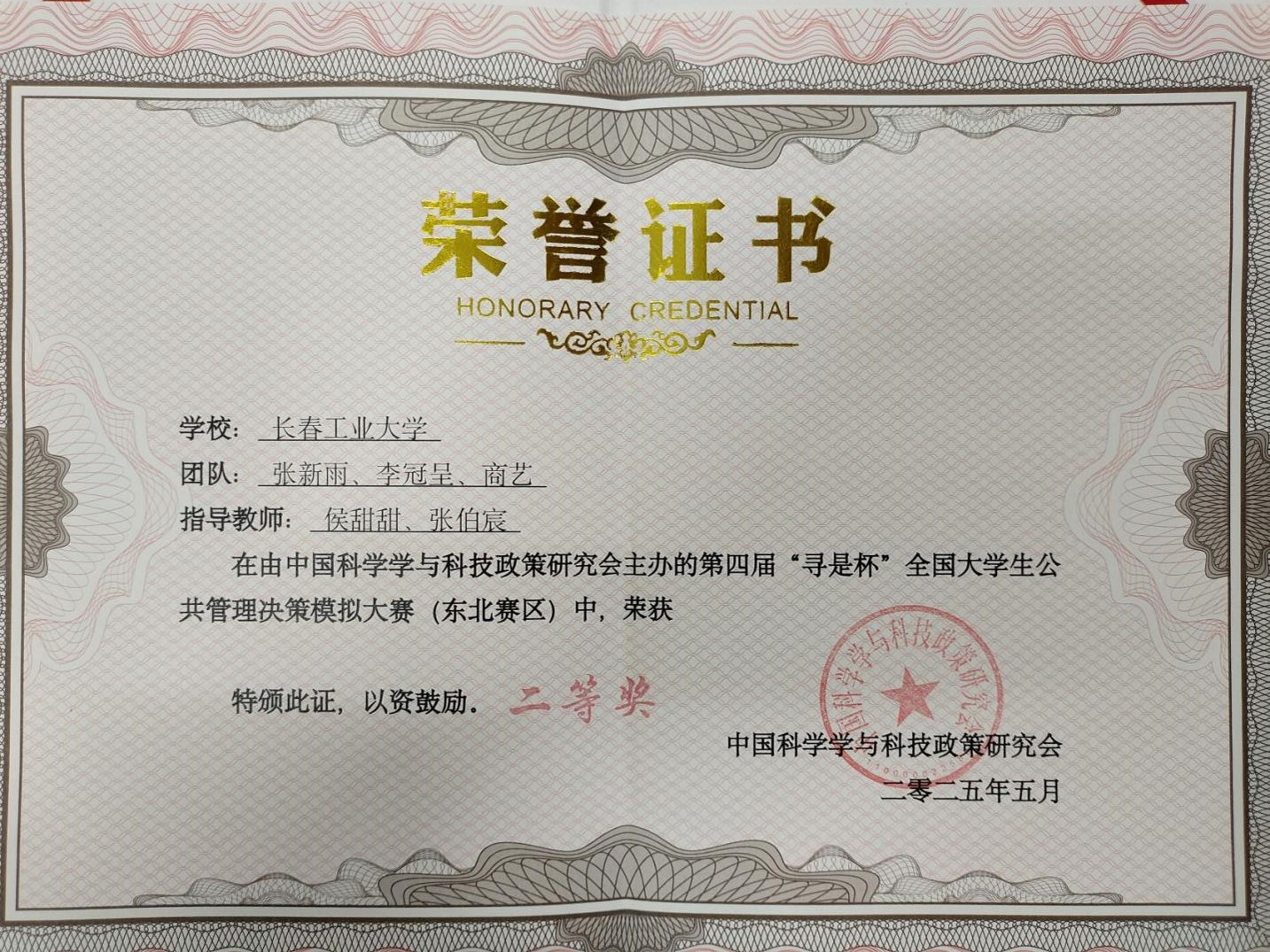 今年会学生荣获第四届“寻是杯”全国大学生公共管理决策模拟大赛(东北赛区)二等奖