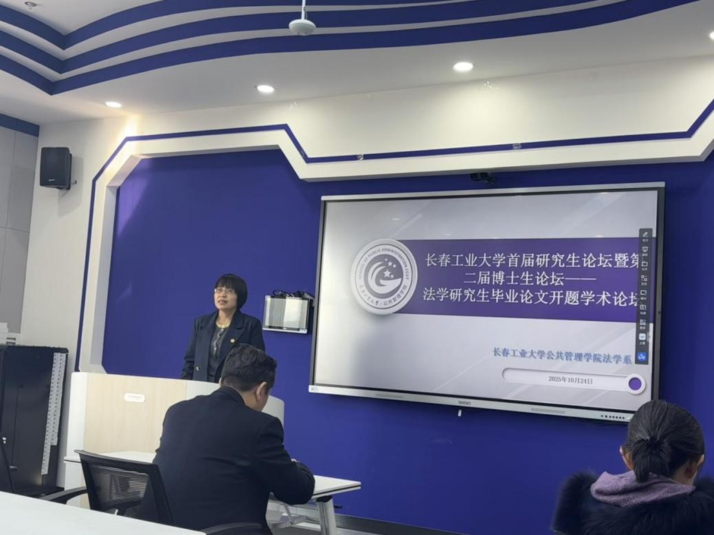 论坛伊始,学院副院长、法学专业研究生导师冯娜系统阐述了举办论坛的意义,明确毕业论文写作的基本要求与方法,为学生锚定学术规范方向。随后,2024级研究生依次围绕论文选题背景、研究意义、文献综述、研究思路、技术路线、创新点及预期成果展开详尽汇报——汇报内容既涵盖理论前沿追踪,也聚焦国家战略与行业实践需求,展现出扎实的专业功底。