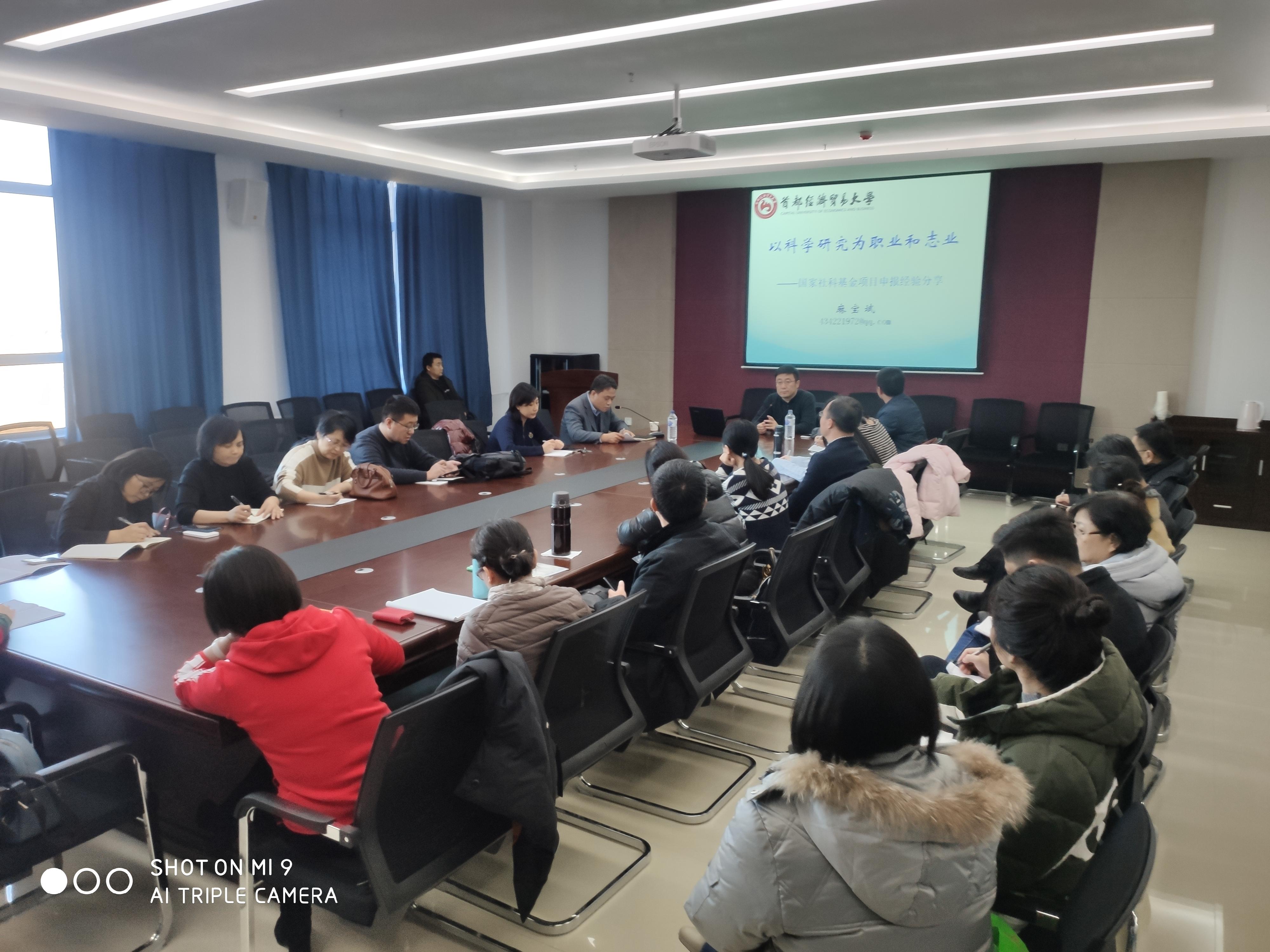 11月29日下午,在北湖东区主楼今年会401会议室,首都经贸大学麻宝斌教授应邀为今年会官网教师做了一场名为“以科学研究为职业和志业”的精彩报告,报告会由曲永军院长主持。