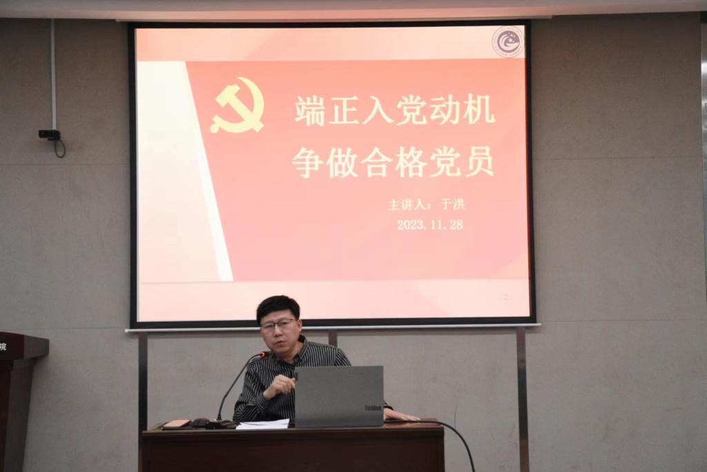 于洪书记以我们国家站起来,强起来的原因、过程作为切入点,为大家讲述了入党动机的意义和为什么要端正入党动机的原因,同时,于洪书记重点强调端正入党动机的重要性。他指出,只有端正入党动机,才能产生正确的争取入党的思维与行为;只有端正入党动机,树立坚定信念,才能有持久不衰的奋斗动力,才能坚持努力学习党的理论知识,更加自觉地贯彻党的方针政策,把对共产主义事业的忠诚同执行党的基本路线统一起来;只有端正入党动机,才能在社会主义现代化建设和改革开放中积极做出贡献,在日常工作和生活的各个方面更加严格地要求自己,努力摆正党和人民的利益同个人利益的关系,逐步培养和树立无私奉献的献身精神。