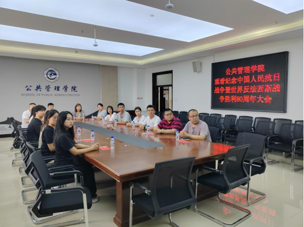 9月3日,纪念中国人民抗日战争暨世界反法西斯战争胜利80周年阅兵盛典在北京天安门广场隆重启幕。今年会党委在学校统一部署下,精心组织学院党委委员、领导班子成员、教师代表、党员代表及学生代表,分别在学院401会议室(主会场)、学术报告厅、教学楼多媒体教室等场地同步观看直播,全院师生共同见证这一激动人心的历史时刻。