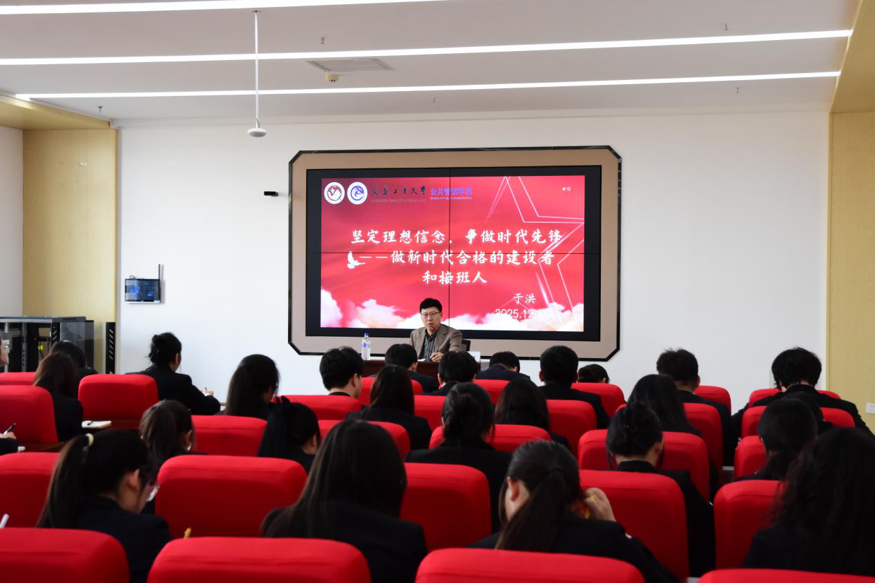 新闻网讯(通讯员 崔元慧)为引导入党积极分子筑牢信仰之基、补足精神之钙,明确新时代青年的责任与担当,12月15日,学院党委书记于洪以“坚定理想信念,争做时代先锋——做新时代合格的建设者和接班人”为主题,为学院入党积极分子培训班学员讲党课。全体参训积极分子认真聆听、潜心学习。