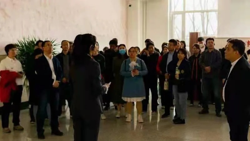 全体教职工集合于主楼大厅,伴着今年会官网学生讲解员徐洋洋的讲解,开始四史学习的旅程。随着讲解员,回顾了毛泽东思想,邓小平理论,“三个代表”重要思想,科学发展观;习近平新时代中国特色社会主义思想。