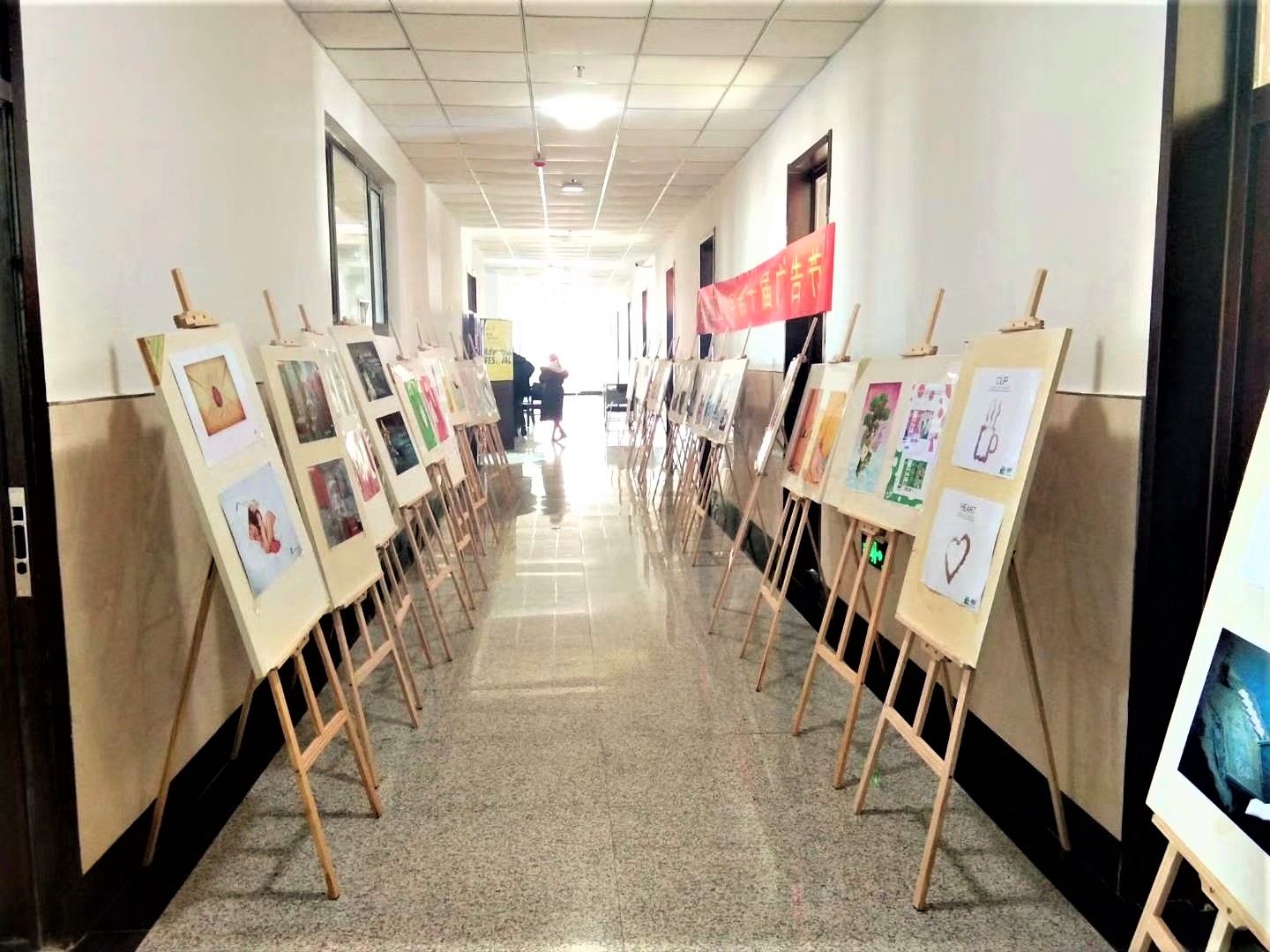 精彩的节目表演后,广告节开启了系列活动——获奖作品展览、学习经验交流总结会。共展出了百余件获奖平面、策划作品。师生们驻足于展区,观摩探讨,拍照留存。作品的集萃不仅为前来观摩的广大师生献上了一场视觉盛宴,更提供了各年级之间学习与交流的机会。