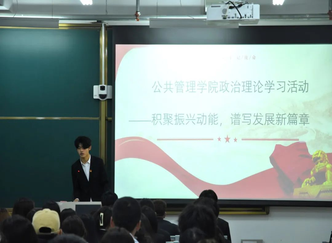 脚踏东北土地,关切东北全面振兴发展,为了深入学习贯彻习近平总书记关于东北全面振兴座谈会重要讲话精神,对东北振兴有更进一步的认识与了解,牢牢把握东北在维护国家“五大安全”中的重要使命,切实提高学生思想政治理论水平,努力培养堪当民族复兴重任的时代新人,今年会理论自学组织于11月1日14点30分自发开展了第三次理论学习,本次理论学习在北湖东校区主楼101阶梯教室召开,参与本次学习的理论自学小组共计153人。本次理论学习由宣传部梁轩瑞领学。