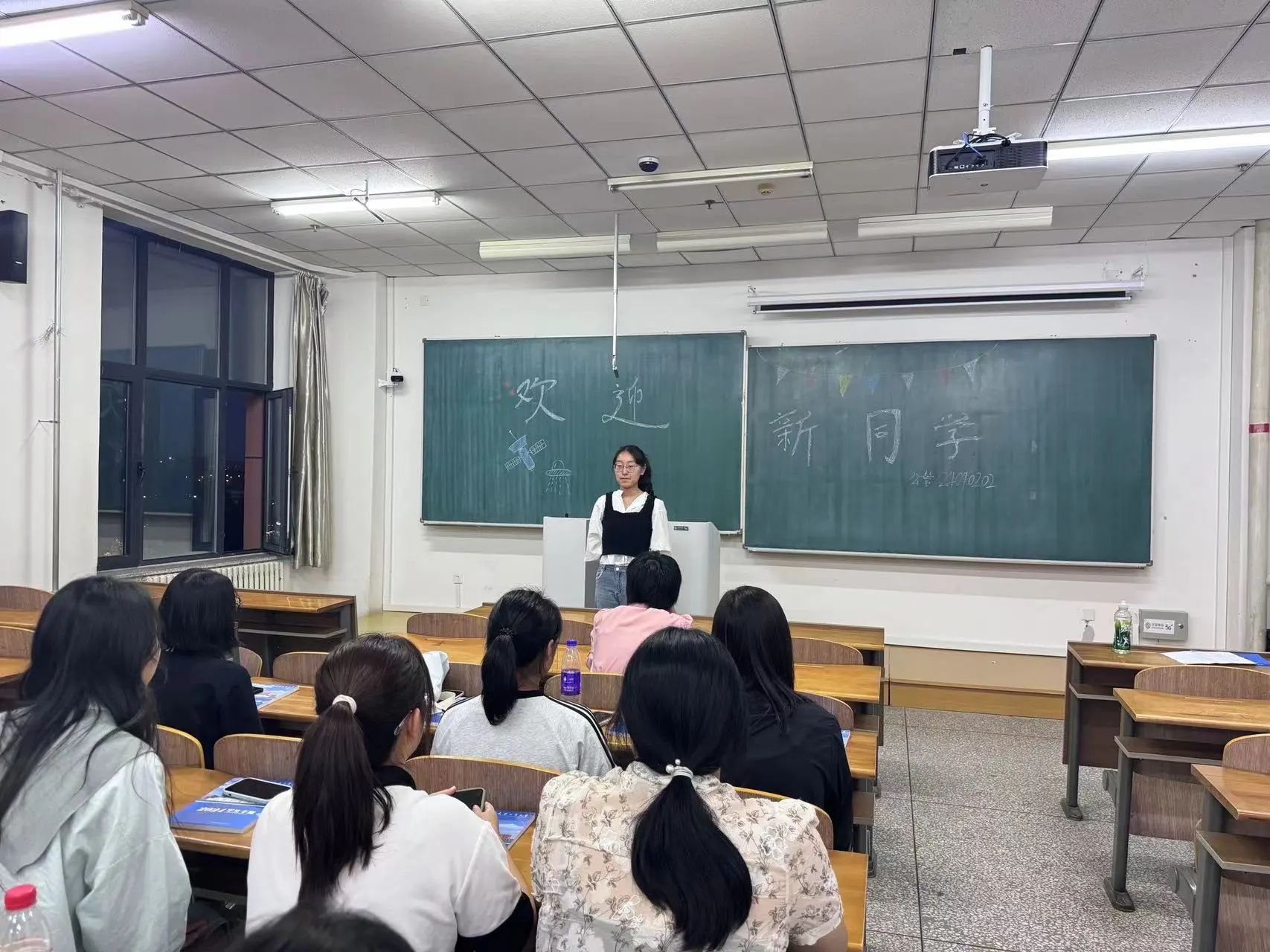 解答完后,崔老师将各班班代依次介绍给2024级新生同学,各班班代在进行自我介绍的同时,也表达了自己对新入学同学们的美好祝愿,希望同学们能在日后的大学生活中勤勉上进,有所成就。