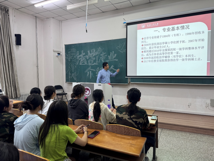 法学专业介绍会于北湖西区主楼1420教室由系主任宋浩主讲。宋老师从法学专业的课程介绍、实践比赛、考研情况、就业方向、工作核心以及学习资源等方面进行了一个详细、具体的介绍。宋老师特别强调到,法学的学习除了专业性知识的学习,更需要同学们有丰富的社会实践经验,学院为同学们提供了实践基地和平台,并举办了许多活动,以培养法学生们的法律实践能力。宋老师希望2024级新生珍惜好每一次学习机会,确立并坚定目标,不懈为梦想奋斗。
