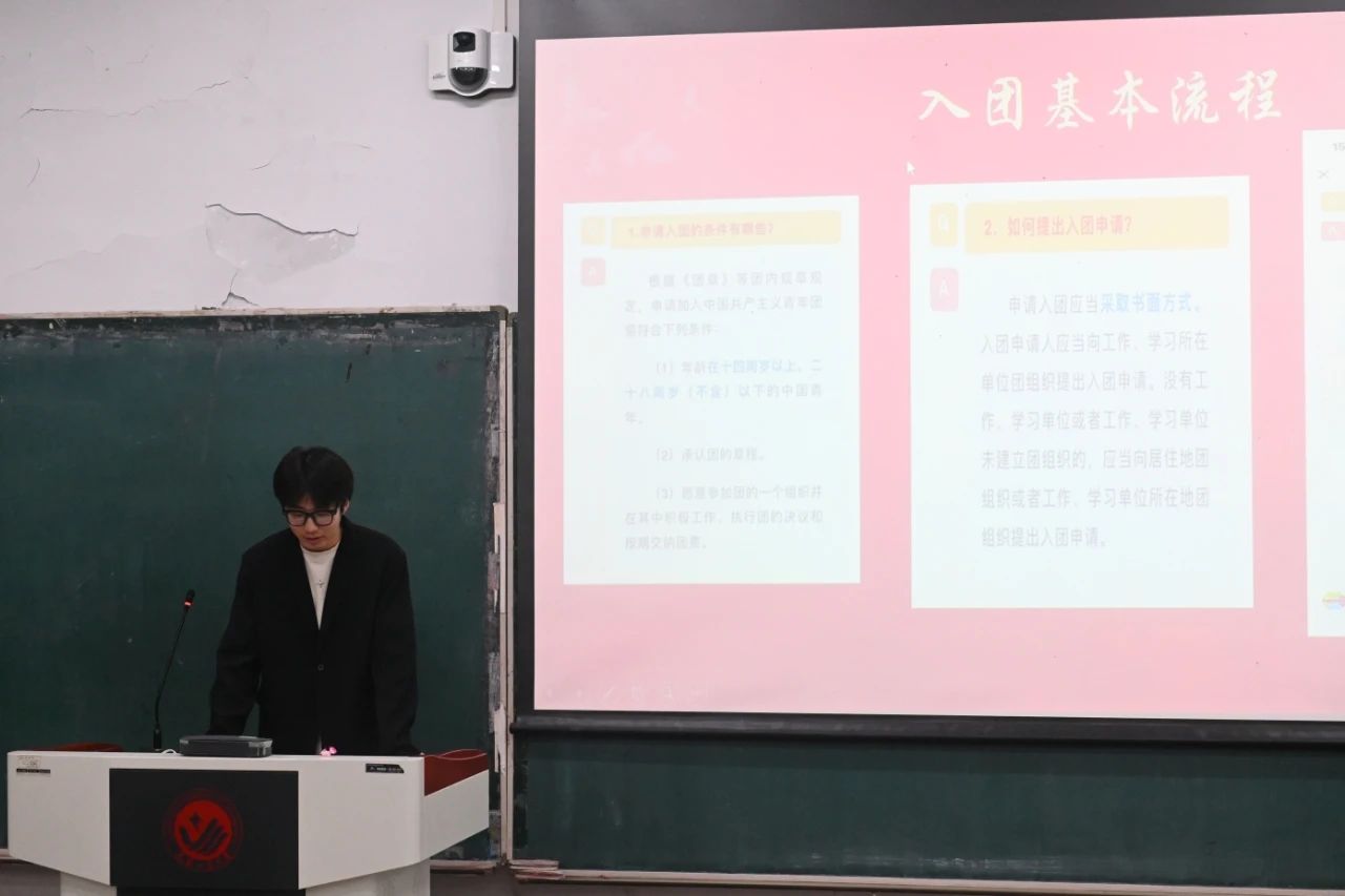 他还为大家介绍了入团基本流程、团组织关系转接流程,以及在2023-2024学年学院团组织发展团员的情况,号召同学们积极向团组织靠拢。
