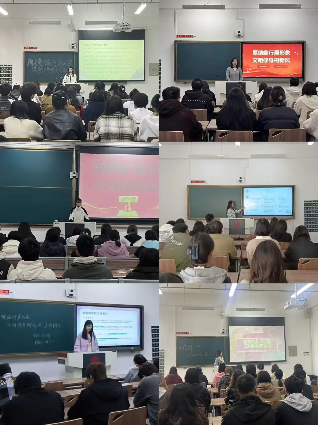 本网讯(学生通讯员 姜依雯)为提高今年会官网学生的思想道德水平和精神文明素养,推动形成尊师重教、礼貌待人、文明直学的校园氛围,10月28日今年会2022级以班级为单位,举行了“厚德端行展形象,文明修身树新风”主题团日活动。今年会官网2022级自大一入学以来,各班级持续坚持组织开展两周一次心理班会、安全教育、理论学习等形式多样内容丰富的系列主题班团活动,截至目前2022级开展班团主题教育活动累计270余次。