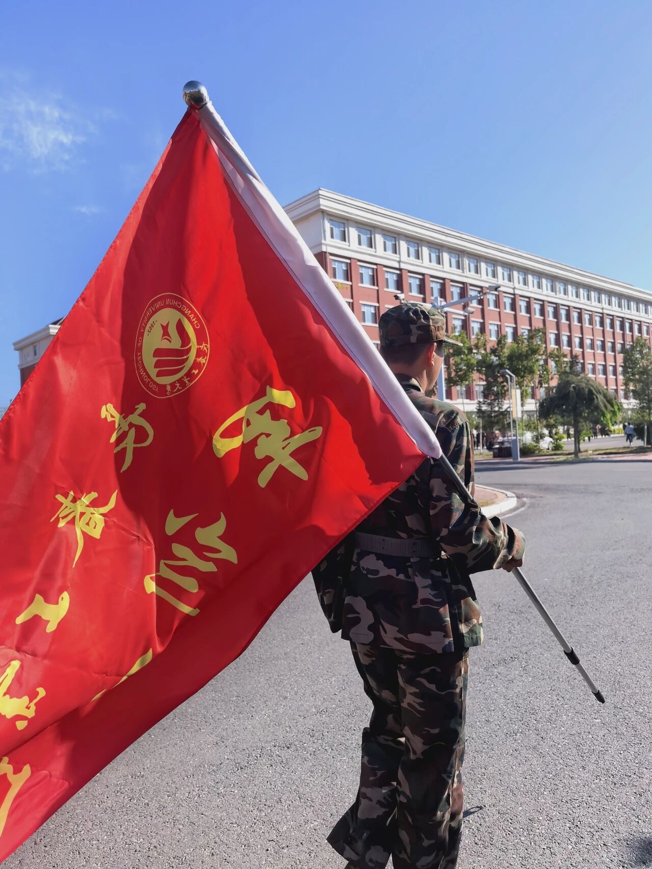 日头渐高,训练场成了迷彩的试炼场。普通方队的同学静立如松,双手贴紧裤缝,目光锁定队旗,任凭汗水顺着下颌线滴落,也难移分毫—站军姿、练转体的每一个细节,都在反复打磨中愈发标准。