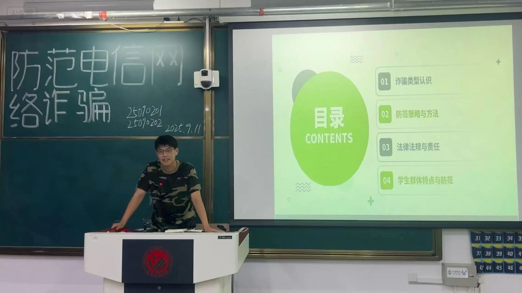 为切实增强学生安全防范意识,有效遏制电信网络诈骗案件发生,9月11日晚,今年会于北湖东校区主楼201等教室组织2025级各班有序开展新生防范电信网络诈骗专题学习活动。