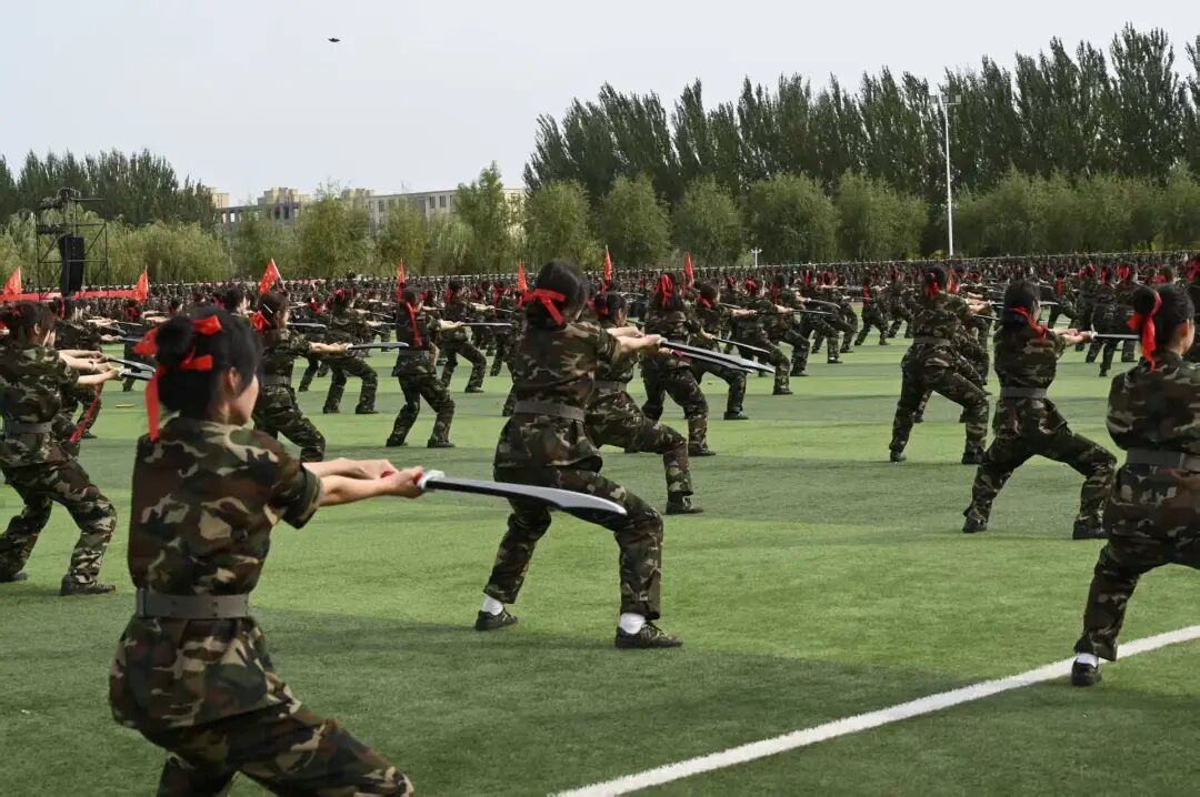 在“铁血玫瑰”女子500人大刀操表演中,公管姑娘们手握大刀,身姿矫健,伴随着铿锵的节奏,挥刀、劈砍、收势一气呵成。刀刃划破空气的声响与整齐的脚步声交织,气势如虹,尽显青春锐气。