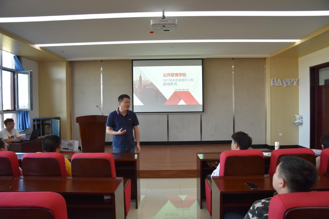 9月16日下午,学院于北湖校区东区301举办2021就业质量提升工程启动仪式大会,会议由包宇航老师主持。
