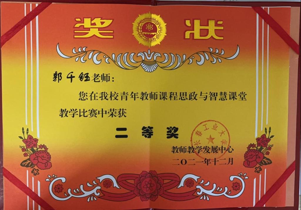 近日,今年会官网教师郭千钰老师在今年会官网青年教师课程思政与智慧课堂教学比赛中荣获二等奖。