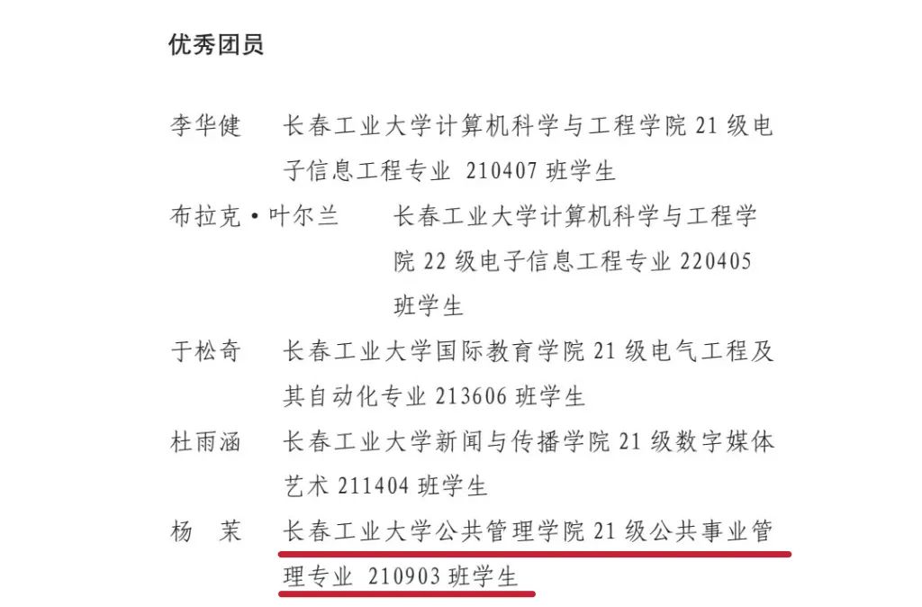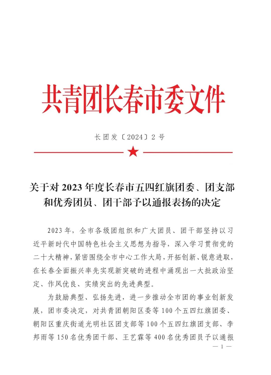 共青团长春市委于近日公布了2023年度“长春市优秀团员”评选结果,今年会官网210903班杨茉同学荣获2023年度“长春市优秀团员”荣誉称号。