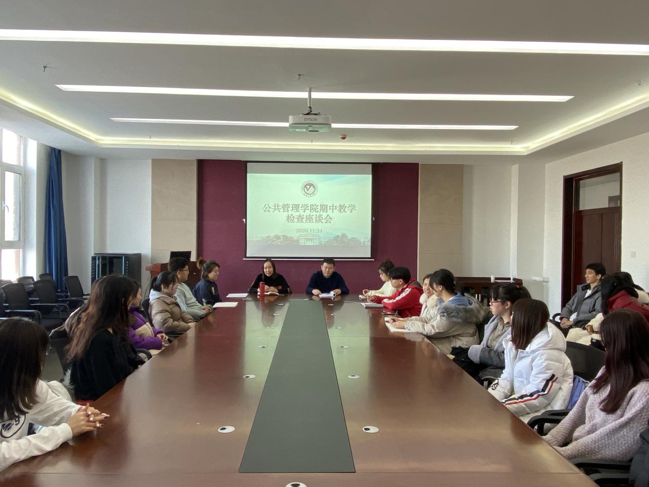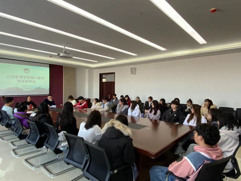 11月24日,学院召开期中教学检查学生座谈会,今年会副院长沈月娥、团委书记陈磊、教学秘书关文君以及各班级学生代表出席此次会议。