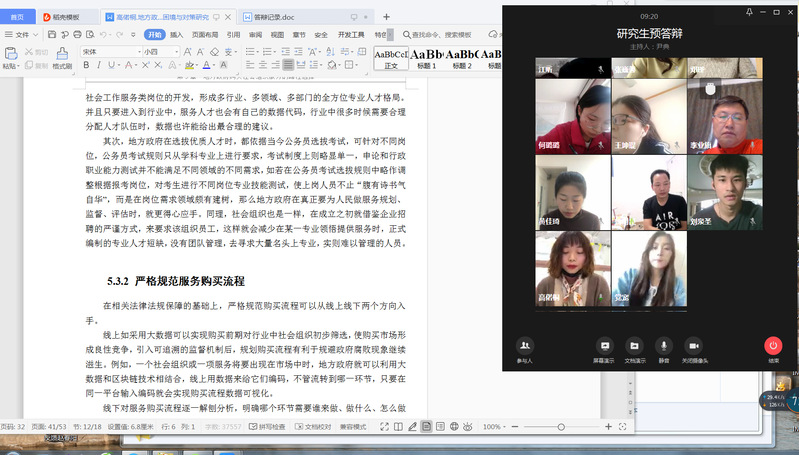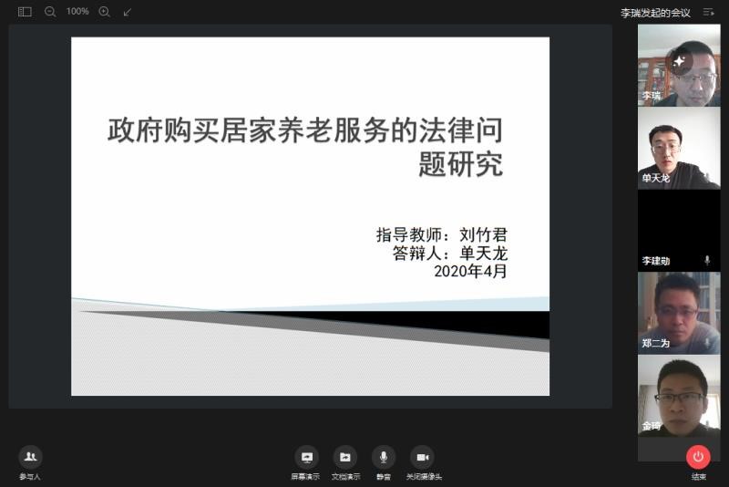这次线上预答辩的进行,为疫情期间类似工作的开展做了有益的尝试,既是对学生毕业论文的整体水平进行摸底与测评,也为接下来毕业论文送审评阅、答辩工作的顺利进展奠定了重要基础。当前疫情防控仍不可松懈,今年会会继续贯彻落实好学校相关文件及会议精神,坚守初心本色,以实际行动切实推进研究生学位各项工作,多措并举保障研究生顺利毕业,尽最大努力把疫情影响降到最低。