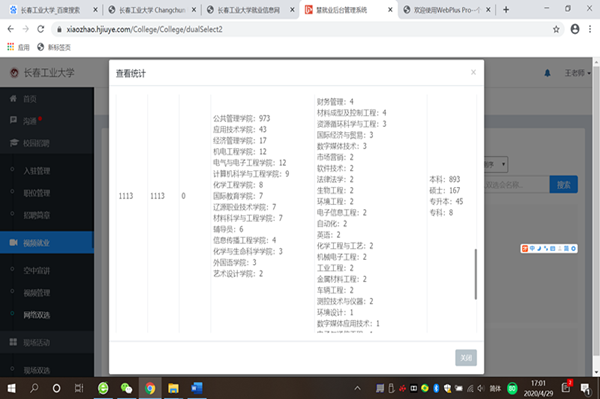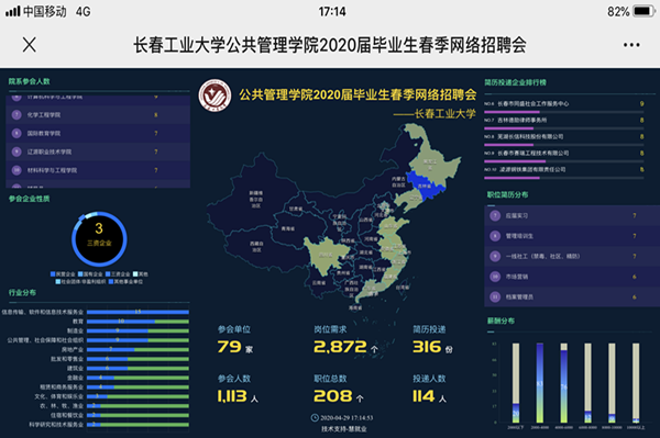 今年会全体师生积极参与此次网络招聘会,截止4月29日17:00,共有1113名师生参与到此次招聘会中。投递简历316份,初步达成就业意向7人。