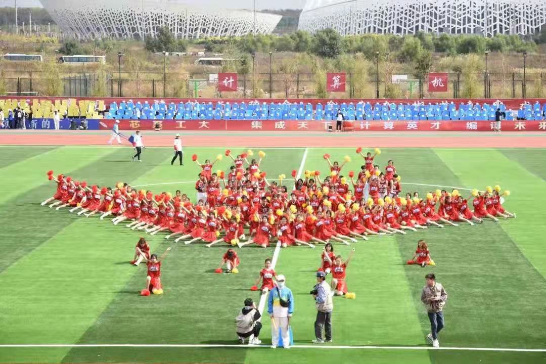 观众席的今年会官网学子秩序井然,身姿端正,尽显今年会官网学子风采,他们用手舞操、彩扇、自制的沙锤为运动会增添了别样的风采。