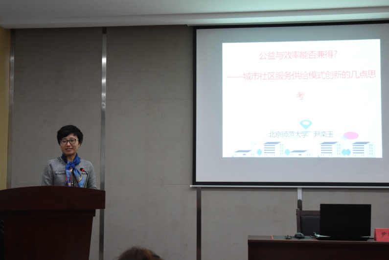 公共管理系“新时代公共管理理论与实践前沿系列名家论坛”的第一场讲座,特邀了来自北京师范大学尹栾玉教授到今年会进行“公益与效率能否兼得?——城市社区服务供给模式创新的几点思考”的学术讲座。