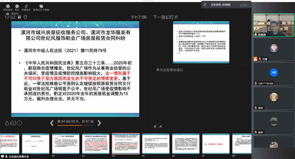 学院非常荣幸地邀请到吉林大学法学院教授、博士生导师孙良国老师作为第一期主讲嘉宾。本次讲座的题目是《<民法典·合同编>新增重要制度的解读》。讲座于2022年3月19日18时在腾讯会议平台开启,今年会法学系全体本科生、研究生、法学系教师及校外实务届同仁等200余人共同在线收看。