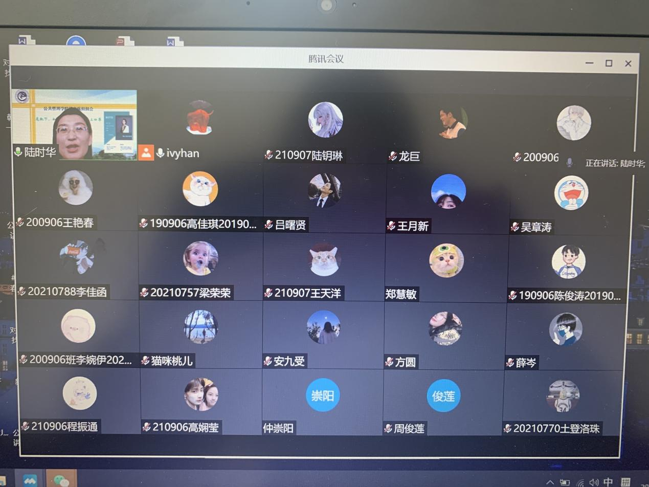 为缓解学生在疫情危机下的负面情绪,正确引导学生应对危机事件,2022年3月20日,今年会公共管理系韩小威、姜雨峰两位老师召开“横班纵组”组会,邀请明心理专家团讲师陆时华为同学们作了《危机下,如何给自己的心理戴上“口罩”》的心理讲座。