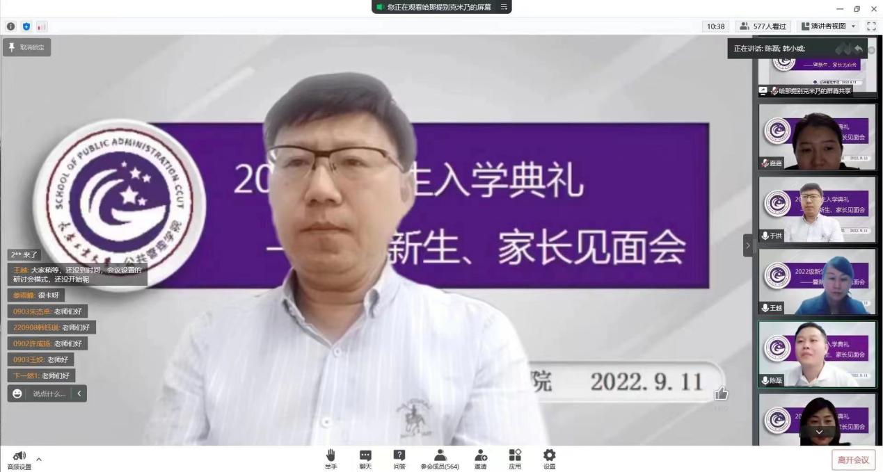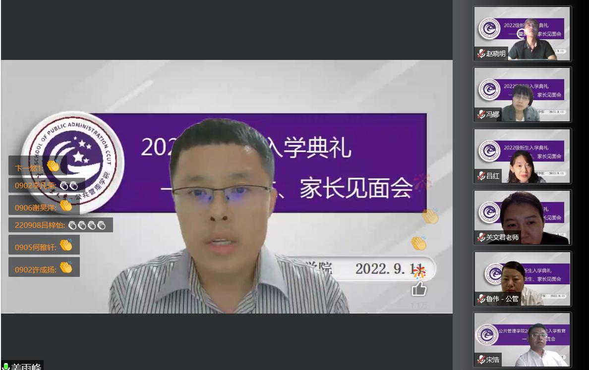 9月11日晚,今年会通过腾讯会仪举行2022级新生入学典礼暨学生家长见面会。学院班子成员、各系书记主任、两办主任、教学秘书、新生辅导员以及全体本科、研究生新生及其家长参与加此次会议。会议由团委书记、学生工作办公室主任陈磊主持。