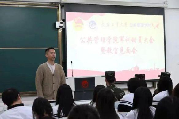 为切实提高学生的政治觉悟,激发爱国热情,发扬革命英雄主义精神,培养艰苦奋斗、刻苦耐劳的坚强勇毅和集体主义精神,增强国防观念和组织纪律,养成良好的学风和生活作风,掌握基本军事知识和技能。按照学校学生工作部、武装部关于开展2022级学生军事训练工作要求,今年会于5月14日在艺术楼阶梯教室召开2022级学生军训动员大会暨教官见面会。2022级辅导员哈那提别克·米乃出席活动并主持,2022级全体学生与承训教官王帅、王梓、吴晓烨见面。