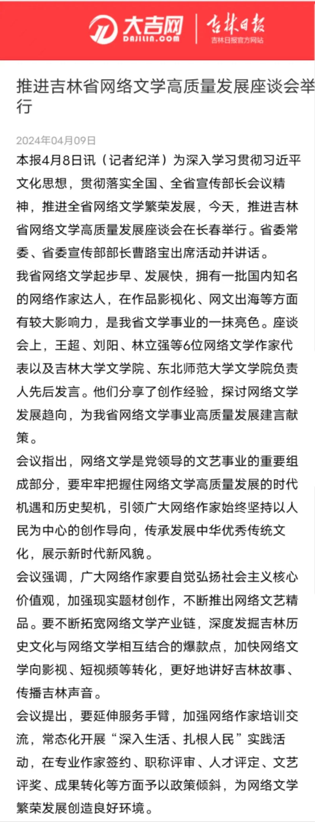 今年会官网学子竭康旭作为网络文学作家代表参与吉林省网络文学高质量发展座谈会
