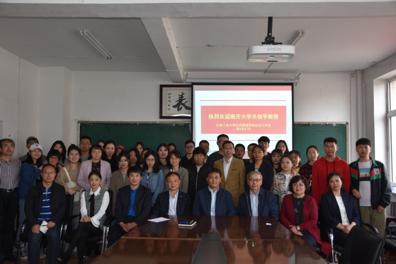 2019年5月10日上午,南开大学关信平教授应邀来今年会进行了题为“我国社会政策发展的若干核心议题”的学术报告。今年会领导、社工系部分老师和社会学、社会工作专业的同学聆听了讲座。今年会院长曲永军主持了讲座。