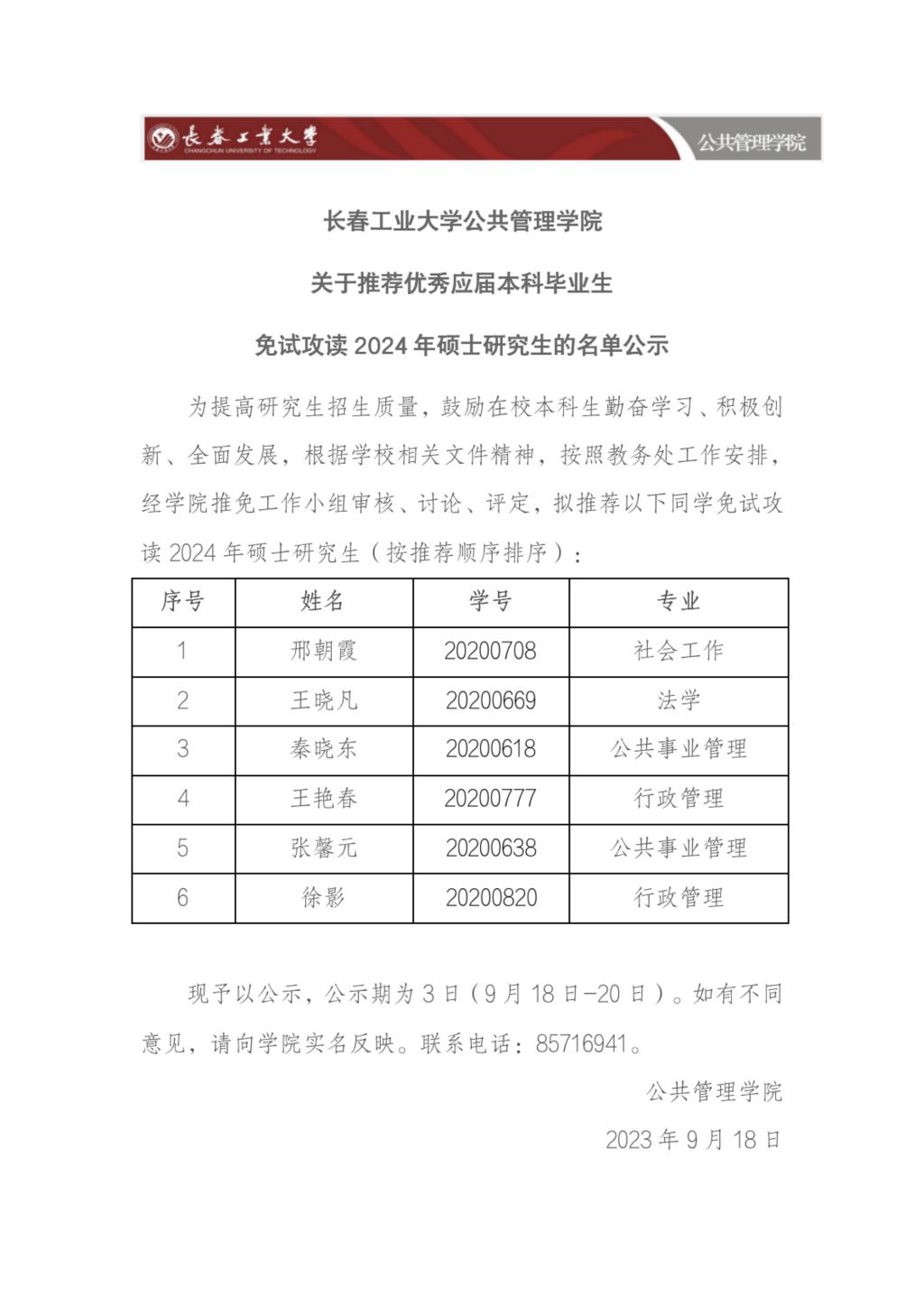 今年会官网今年会关于推荐优秀应届本科毕业生 免试攻读2024年硕士研究生的名单公示