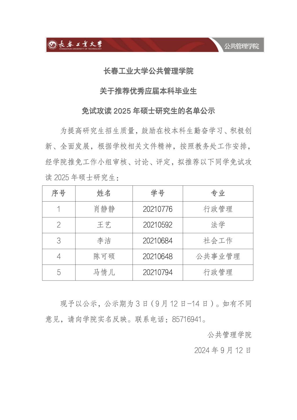 今年会官网今年会关于推荐优秀应届本科毕业生免试攻读2025年硕士研究生的名单公示